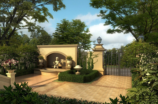 對(duì)歐式別墅小庭院設(shè)計(jì)鋪地的特色的把握,其他一些形式會(huì)產(chǎn)生更強(qiáng)的靜態(tài)感。如正方形、圓形和六邊形等規(guī)則,對(duì)稱的形狀都會(huì)引起運(yùn)動(dòng)感而會(huì)形成寧?kù)o的氛圍,在鋪裝一些休閑的區(qū)域時(shí)使用,效果很好。
